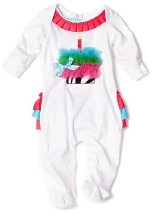 Cotton sleeper features tulle cupcake applique and grosgrain bum ruffles.